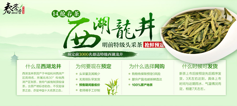 本品采用正品萬擔(dān)春AAA特級(jí)明前西湖龍井茶,以傳統(tǒng)牛皮紙包裝,盛于藍(lán)花布嵌面的木盒之中...